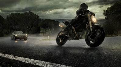 Rain unveils oils that create slippery, wet surfaces that reduce the traction on your tires. The first hour of a heavy rainstorm is the most dangerous time to ride, when the oils are raised to the surfaces of the road and have not yet been washed away. If it’s possible to stop for a quick break, now is the time. Wait the storm out or until the rain has thoroughly washed the road surface clean of oils and anything else that has been left behind prior to getting back on your bike. Once the rain has eased up, ride behind the vehicle’s tire tracks, as they have already propelled some of the water away and allow you the gain better traction.